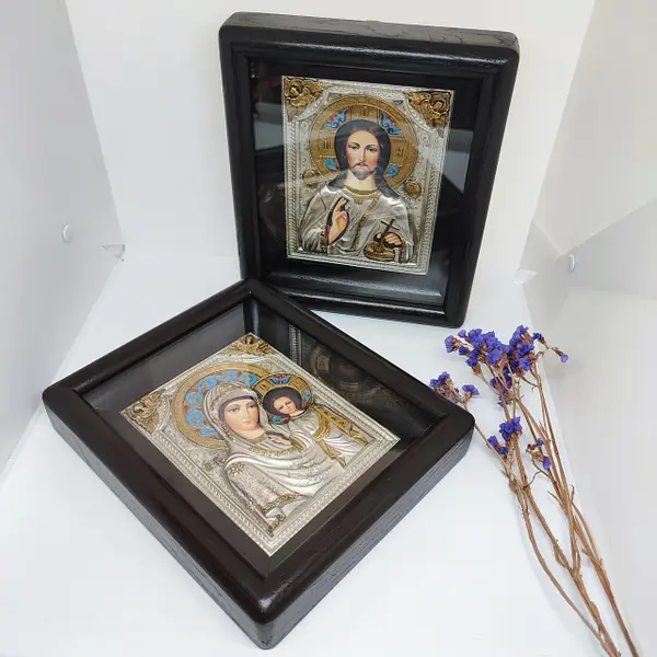 Класичний варіант — це саме пара ікон Спасителя та Богородиці з Ісусом-дитятком. Такий вибір не випадковий: Христос — Голова Церкви, а Богородиця — взірець материнства і покори Божій волі.