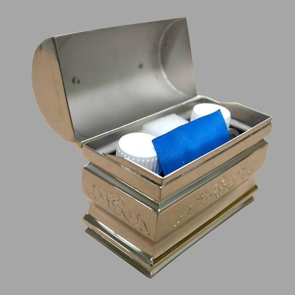 Головна Каталог Інше церковне начиння Хрестильний ящик нікель 10*5*8 см