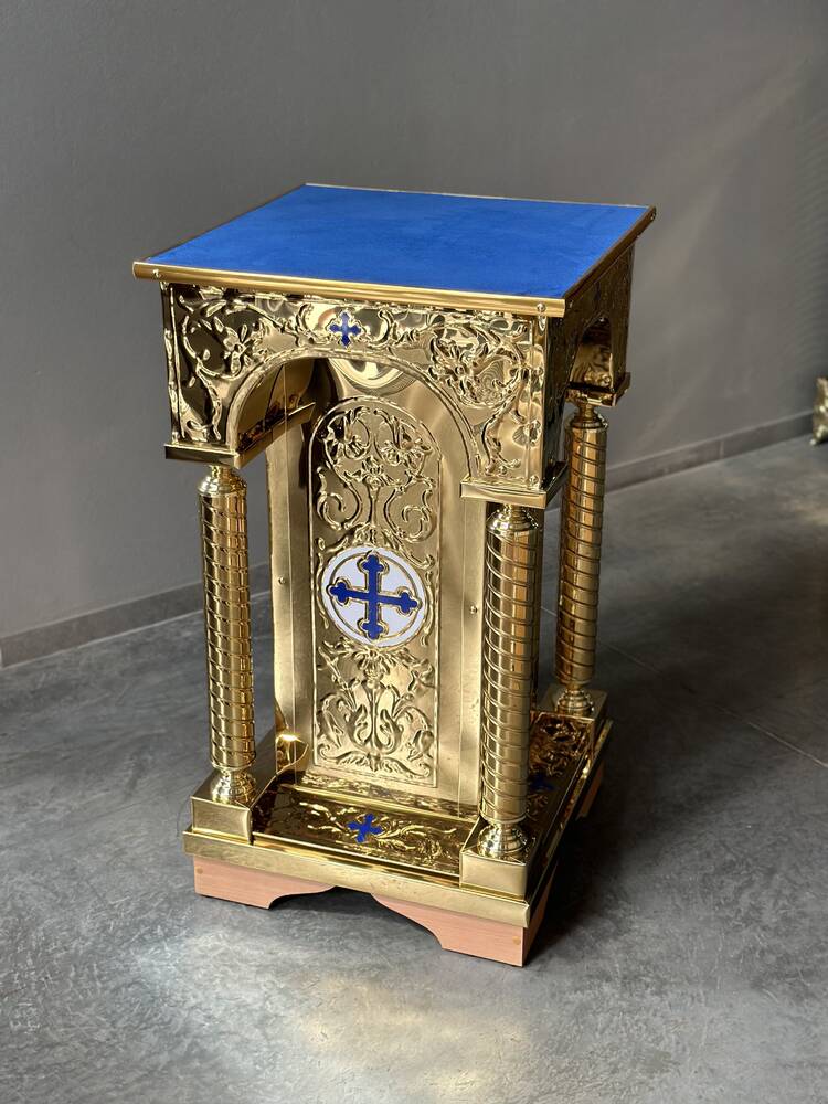 Ми пропонуємо як дуже красиві святкові варіанти з литтям, карбуванням, золоченням, так і простіші підставки для повсякденного зберігання церковного начиння.