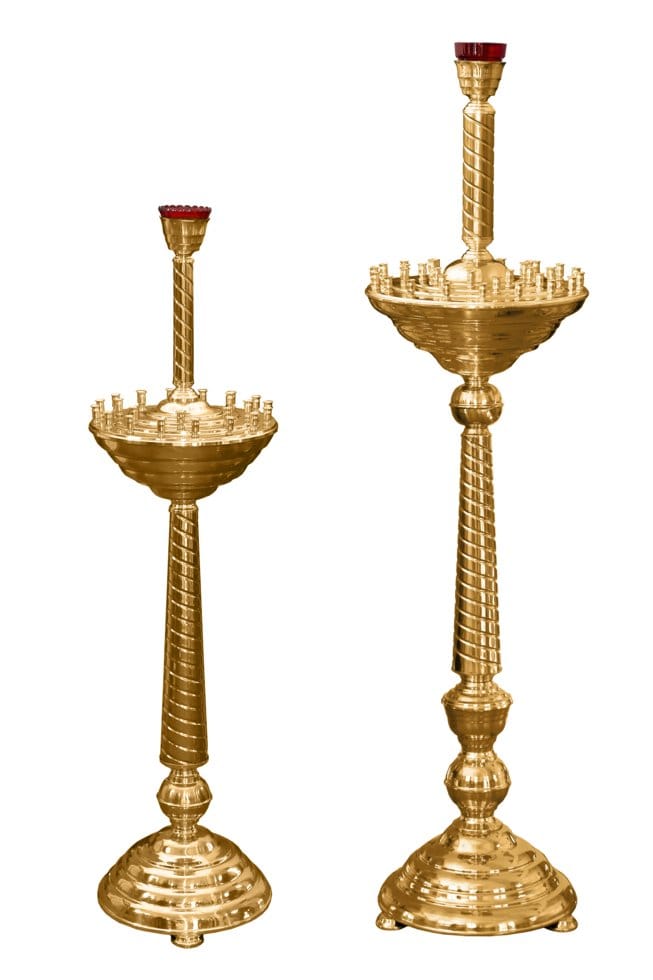 У кожному храмі обов’язково є як мінімум один свічник, на якому завжди горять свічки парафіян. Як правило, свічник вибирається під оздоблення церкви та головних церковних меблів. Найчастіше це латунь, як один з найбільш практичних, недорогих і красивих матеріалів. В асортименті є свічники з тримачами і під пісок, дитячі, виносні, з карбуванням, з латуні та булату. Ви також можете замовити індивідуальне виготовлення свічника, надавши нам свої креслення або ескізи.