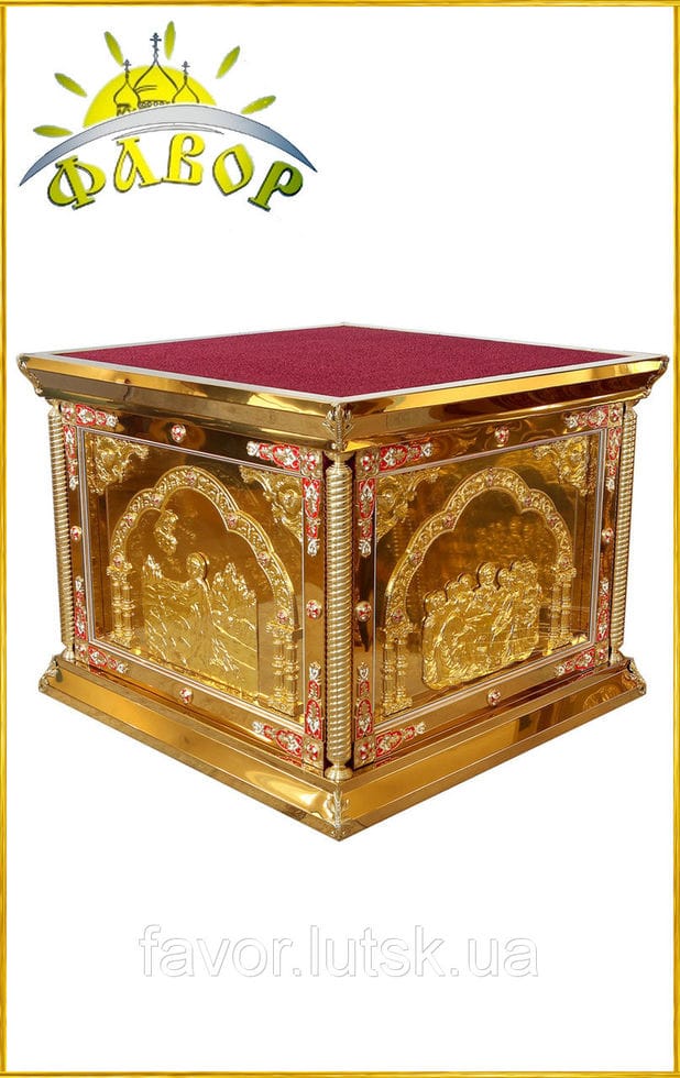 Широкий вибір церковних престолів представлений в інтернет-магазині виробника «Фавор». У нашому каталозі ви знайдете престоли необхідних габаритів, відтінків, з литими прикрасами, карбуванням, оракалом, літографією, іконами. Вироби можуть бути виготовлені з дерева, булату або вилито з латуні.
